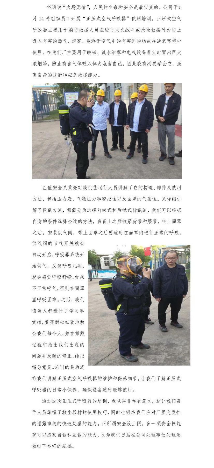 [荣耀网站] 加强实操演练 提升应急能力-正压式空气呼吸器培训有感
