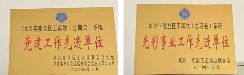 热烈祝贺荣耀网站喜获2023年度工商联(总商会)系统“党建工作先进单位”和“光彩事业工作先进单位”荣誉称号