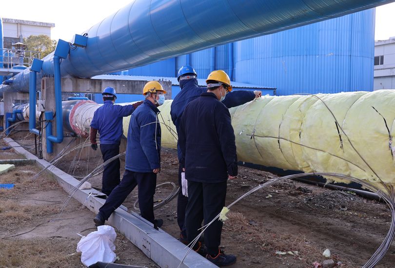 针对12公里的施工线路,项目采用“四标段同步施工”,根据现场条件合理划分作业面,统筹安排土建、焊接、保温等工序,实现多班组协同推进,在保障施工质量和安全的前提下,有效提升整体进度。施工中结合不同区段用汽需求,优化选用不同管径的螺旋钢管,并应用气凝胶保温材料和改进型管托设计,进一步提升管网保温性能,降低运行过程中的热损耗,为绿色低碳运行提供技术支撑。通过精细化管理和工艺优化,切实将精品工程要求落实到每一个施工环节。